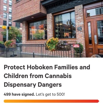 My neighbors have started a petition that already 499 people have signed to help raise awareness, organize support and send a message to those in decision making roles that residential neighborhoods should be protected from recreational dispensaries and consumption lounges.  This is not just a Hoboken issues, NJ state law contemplates this specific distinction as well.  I hope you will consider joining me and our neighbors in signing this petition. #MoreVoicesMatter.  [note the donation request in the petition is for change.org, not for the fight].