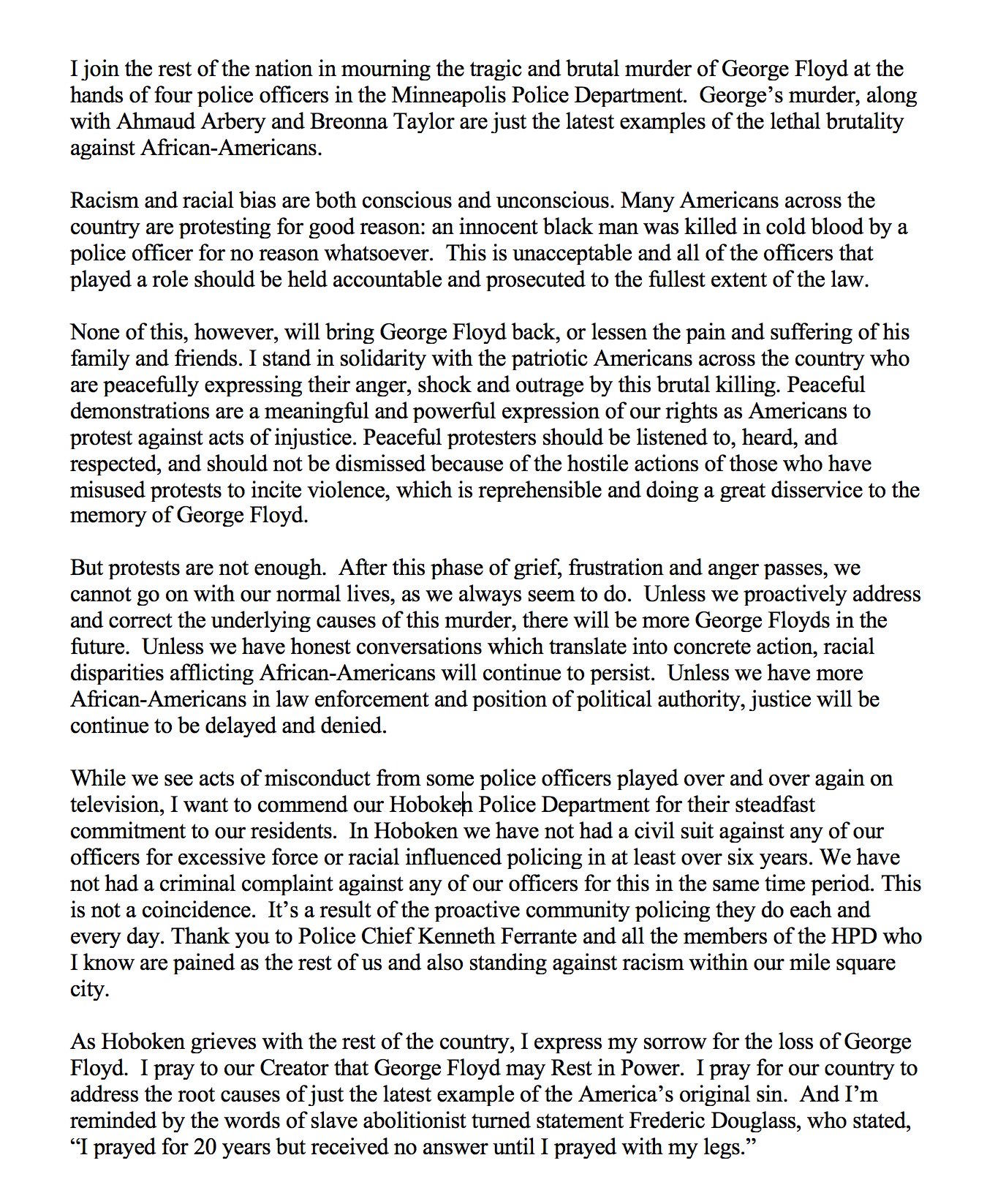 CommunityFeatured StoriesHobokenHudson CountyPolice and Crime Statement From Hoboken Mayor Ravi Bhalla on the Death of George Floyd By Jeff Henig - June 1, 2020 0 216 FacebookXPinterestWhatsApp